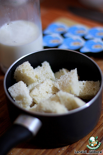 Мякиш из белого хлеба накрошить, залить молоком.