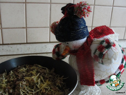 Тут как раз подошло время снимать хорошо пропеченную мясную составляющую Снежной бабы со сковороды, и Снеговик ловко подхватил ее той самой нетерпеливой лопаткой.