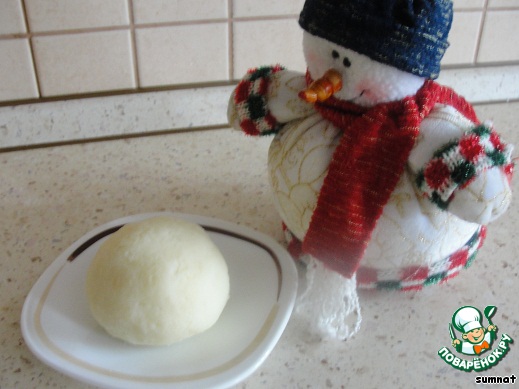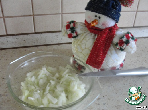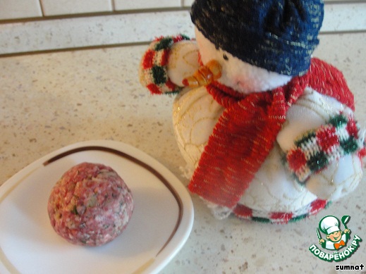Занялся верхним комом. Взял начинку для пирога, добавил немножко майонеза и слепил маленький, аккуратный, даже слегка кокетливый головной комочек. Отложил заготовки в сторону.