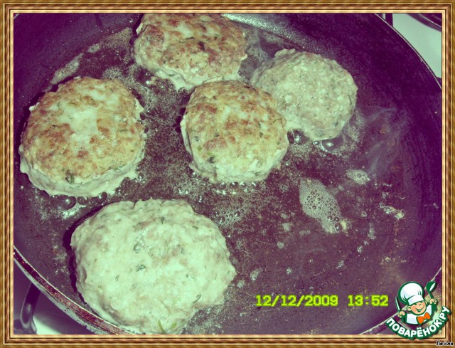 Влажными руками формовать круглые или овальные котлетки и обжаривать в масле с двух сторон.