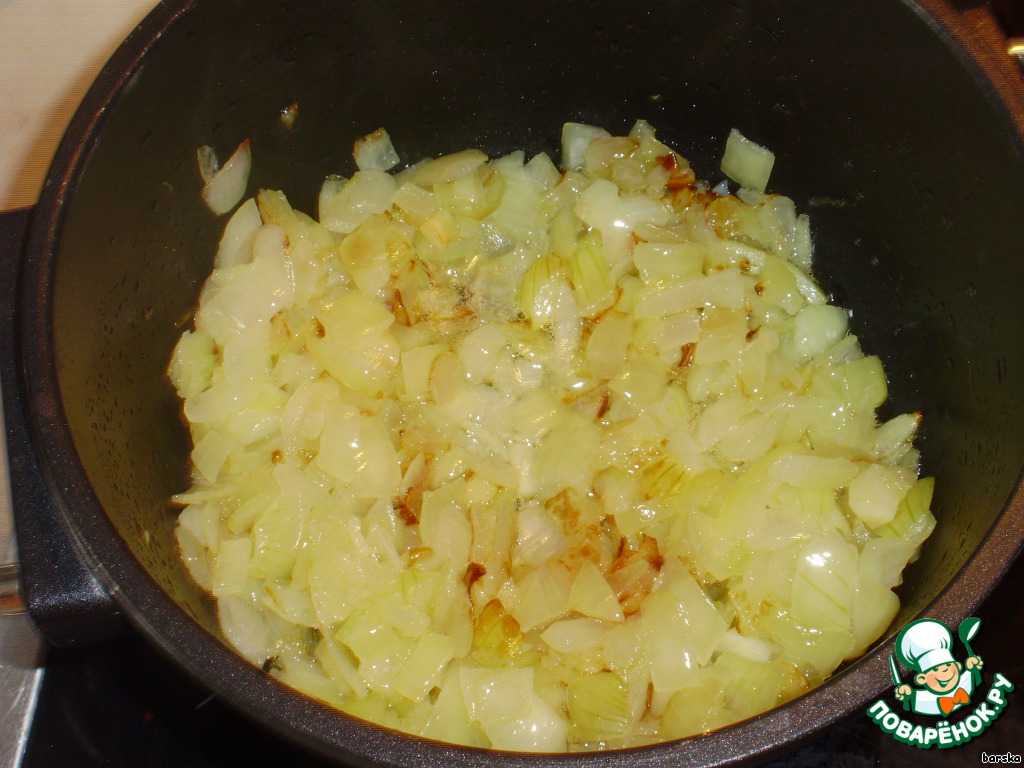 Лук и чеснок порезать и пассеровать в масле до прозрачности.