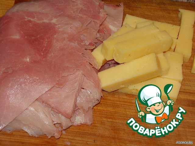 ...в лепешечку рулетик сыра в ветчине.