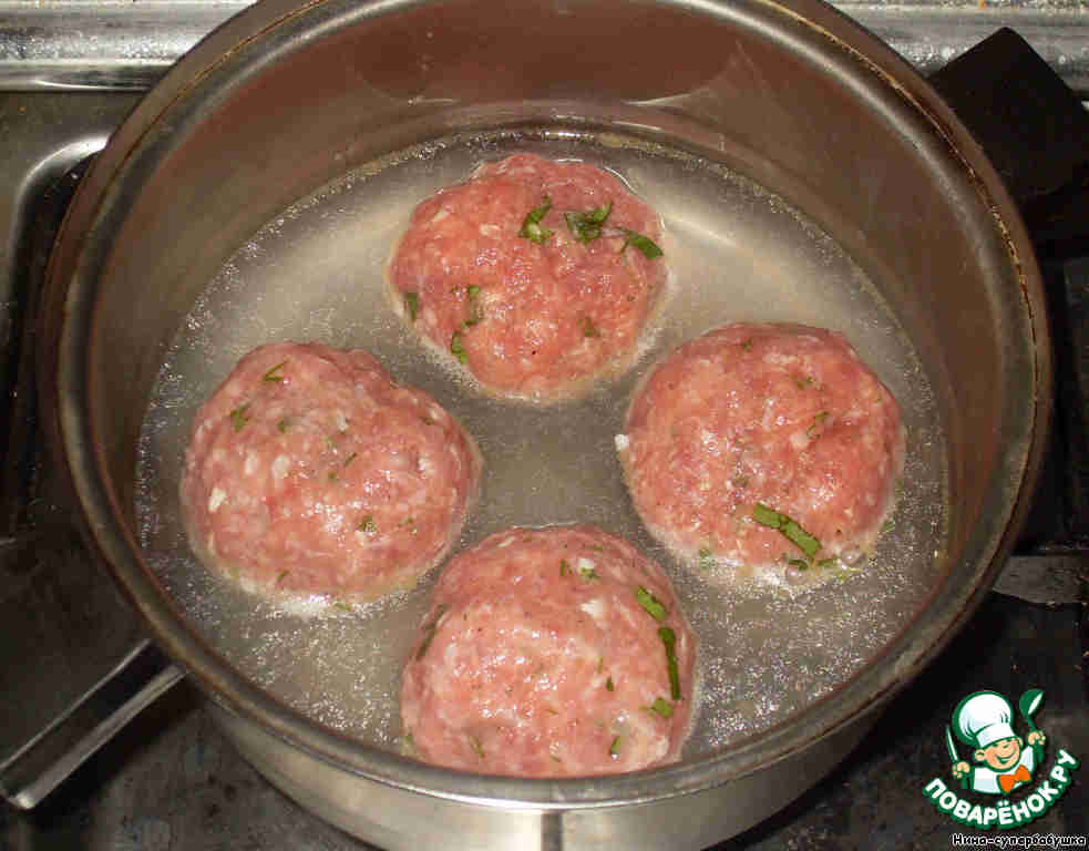 Залить кнели горячей водой по половины их высоты. Воду слегка подсолить, довести до кипения, и варить кнели на маленьком огне под крышкой минут 12.