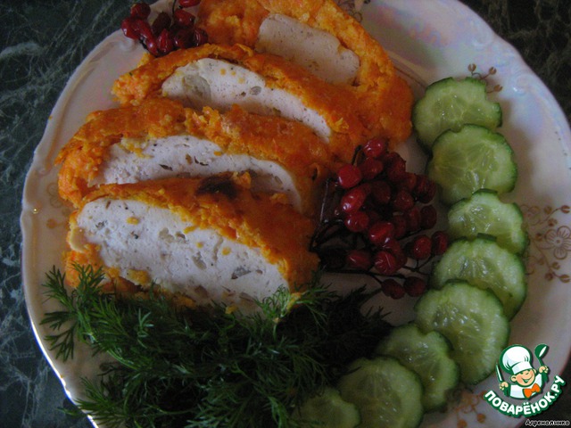 1. Заранее отварите морковь, пропустите через блендер или мясорубку филе курицы.