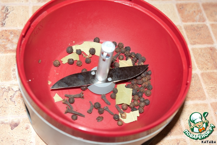 Теперь приготовим ароматную приправу для наших бифштексов. В кофемолку поместите несколько зерен черного перца горошком, ломаный лавровый лист и гвоздику.