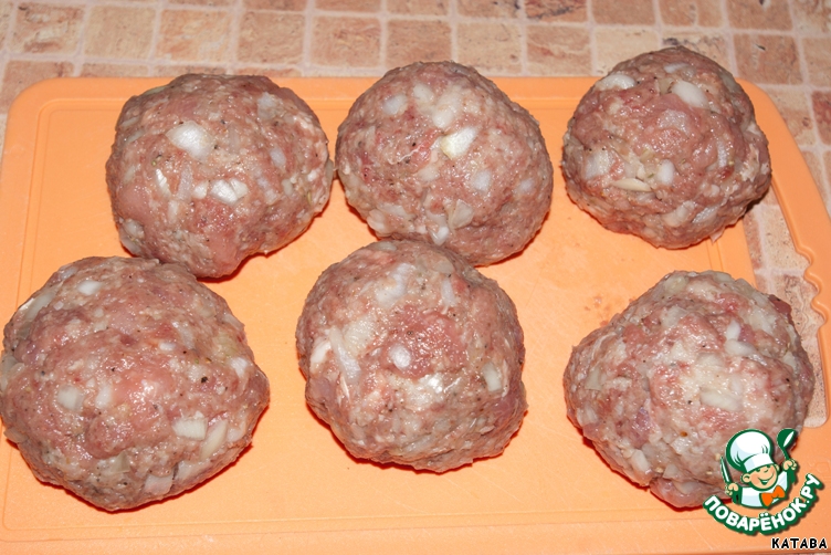 Формируем из фарша большие колобки. Примерно такие, как на фото. Не бойтесь, в духовке большие колобки хорошо пропекутся.