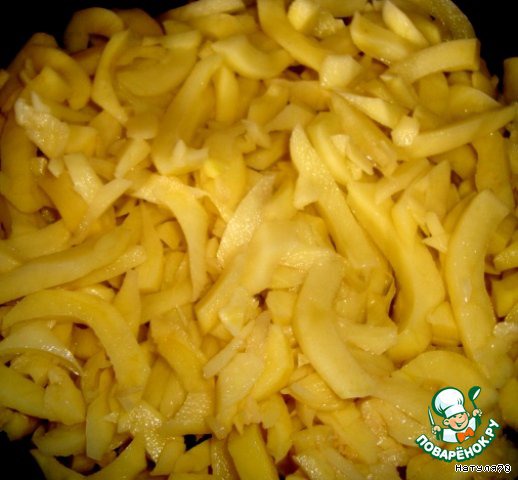 Картофель нарезать брусочками и жарить на растительном масле. Картофель солим и перчим по вкусу. Жарим до готовности.