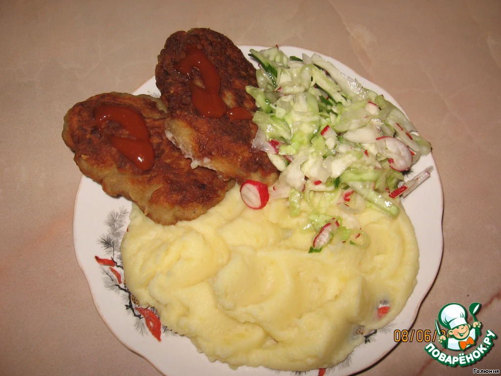 Котлетки получаются очень нежными. Мой трехлетний сынок слопал целую котлетку. Кушайте на здоровье!