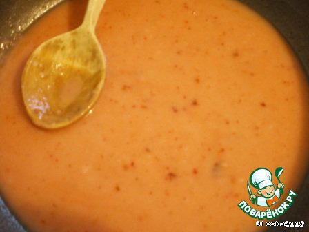 Затем муку разбавляем горячей водой и тщательно перемешиваем, чтобы не было комков. Воду добавляем до консистенции подливы.