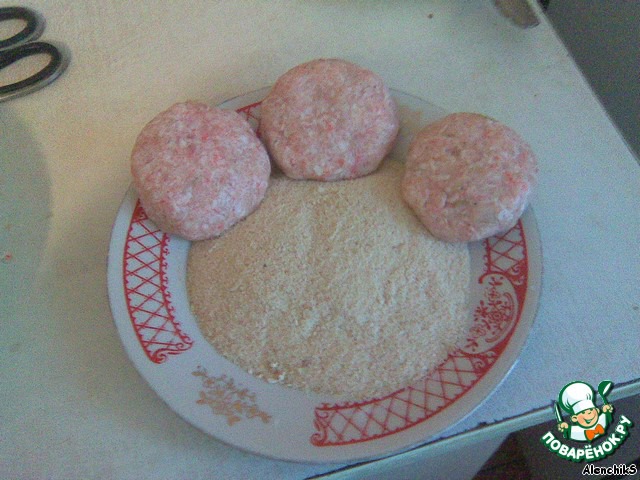 Обвалять в панировочных сухарях и обжарить на небольшом огне с двух сторон до золотистого цвета.