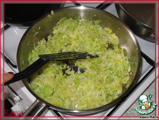 Итак, капусту шинкуем, обжариваем на сливочном масле (вкуснее)