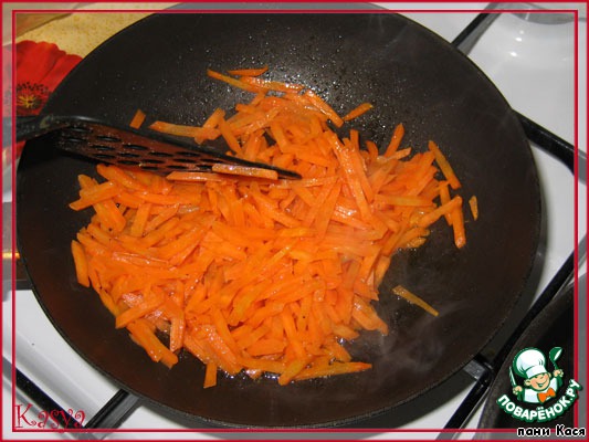 Морковку режем (тертую не люблю), тоже обжариваем немного