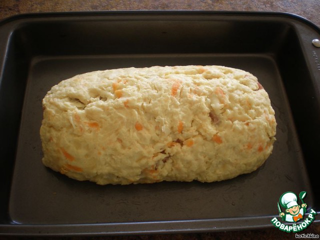 Перекладываем на противень и в духовку на 40 минут 200 С. Достаем, остужаем, нарезаем красивыми брусочками и подаем к столу. Лучше всего такой рулет употреблять с помидорами,они оттеняют его вкус и добавляют свежести.