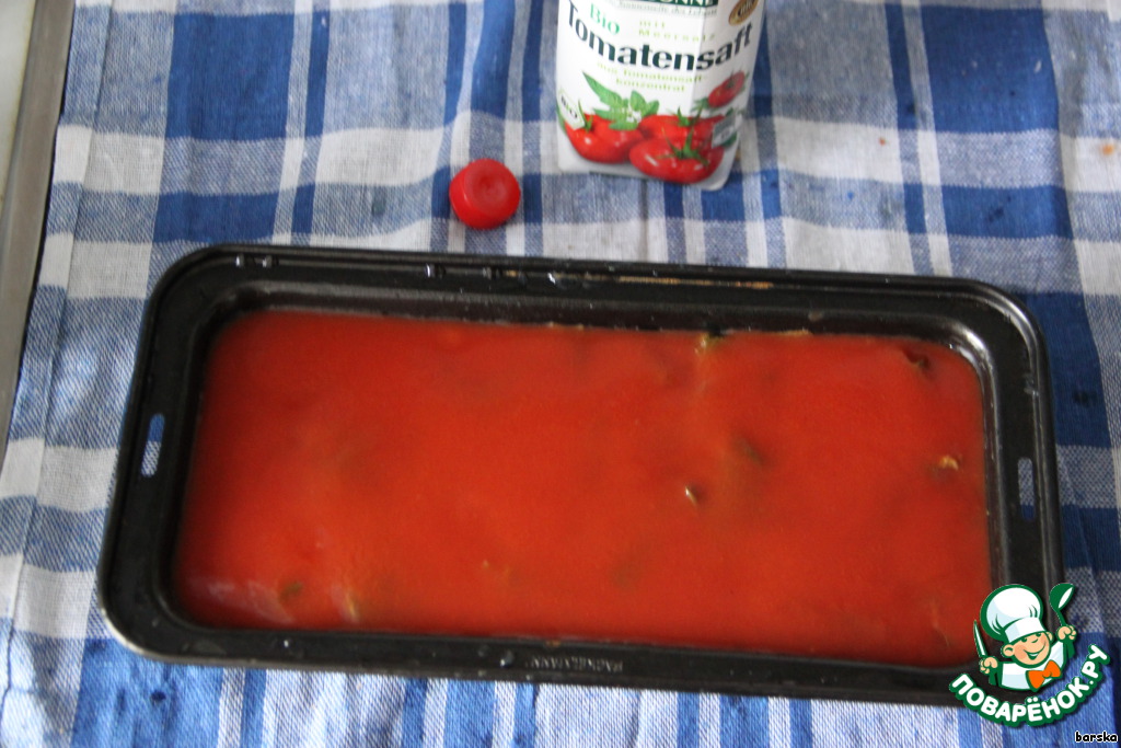 Залить террин томатным соком.