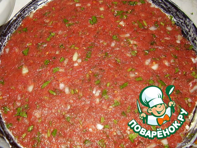 добавляем к нему мелко нарезанную луковицу, у помидоров удаляем шкурку и натираем на крупной терке, также добавляем