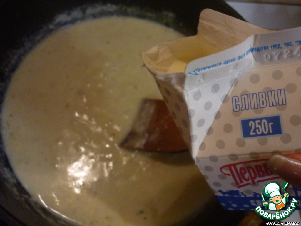 Как только соус закипит, влейте сливки