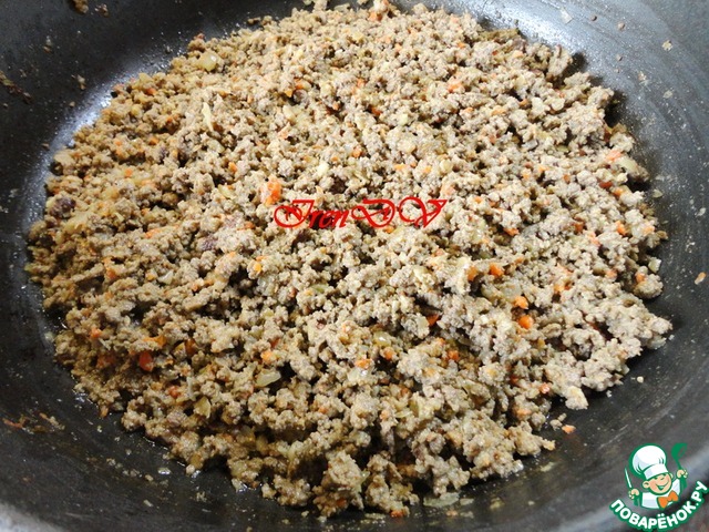 Затем обжариваем на сковороде в растительном масле до выпаривания жидкости. Вот такой фаршик получается: