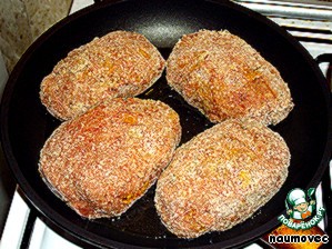 Окунаем каждую в слегка взбитое яйцо, обваливаем в панировке, опускаем в кипящее масло. Обжариваем с двух сторон и тушим при слабом кипении масла под крышкой до готовности (минут 20-25).