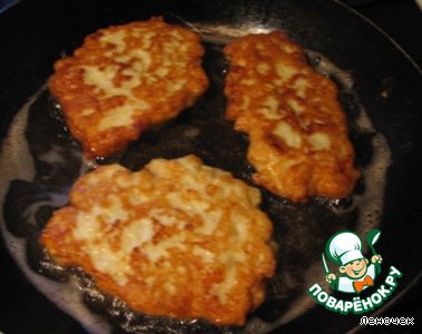 Выкладывать на разогретую сковороду с растит. маслом столовой ложкой. Обжарить с двух сторон, как обычные оладьи.