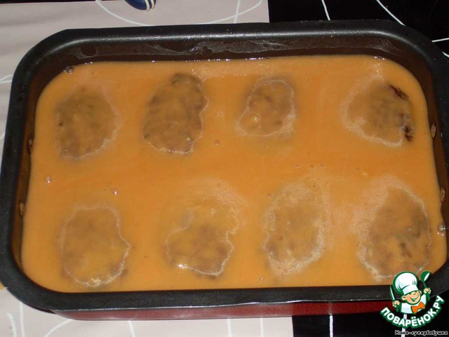 Выложить котлетки в форму, смазанную маслом. Получилось 10 котлет нормального размера.