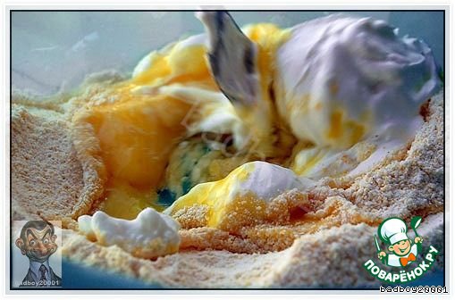Приготовим сначала тесто: смешаем сыпучие ингредиенты,