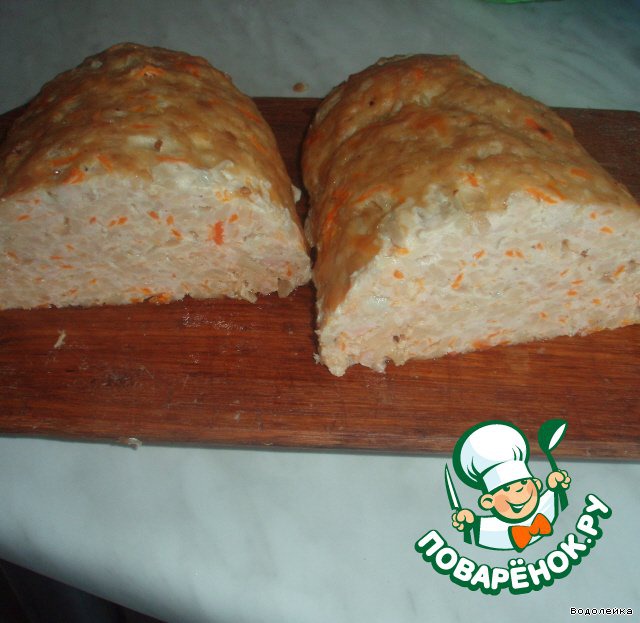 Сформировать из нашего фарша подобие батона, положить в рукав для запекания. Уложить на смазанную маслом форму и запечь в духовке. t 150*.