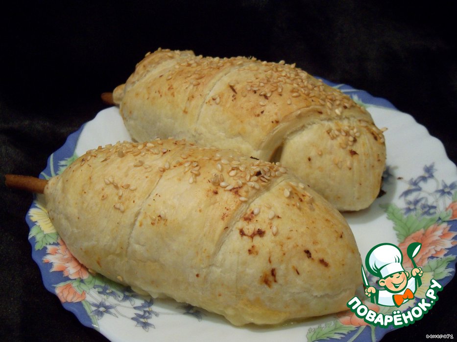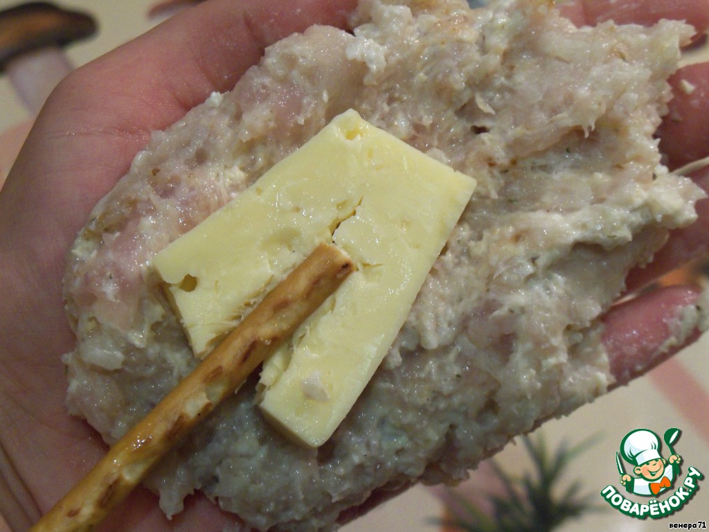 | Вкусные (можно сказать диетические) котлеты с сыром в слоеном тесте. Oчень похожи на "Ложные куриные ножки", хороши как в горячем, так и в холодном виде. |