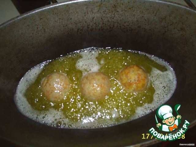 Обжариваем в подсолнечном масле, у кого есть фритюр - соответственно в нем.