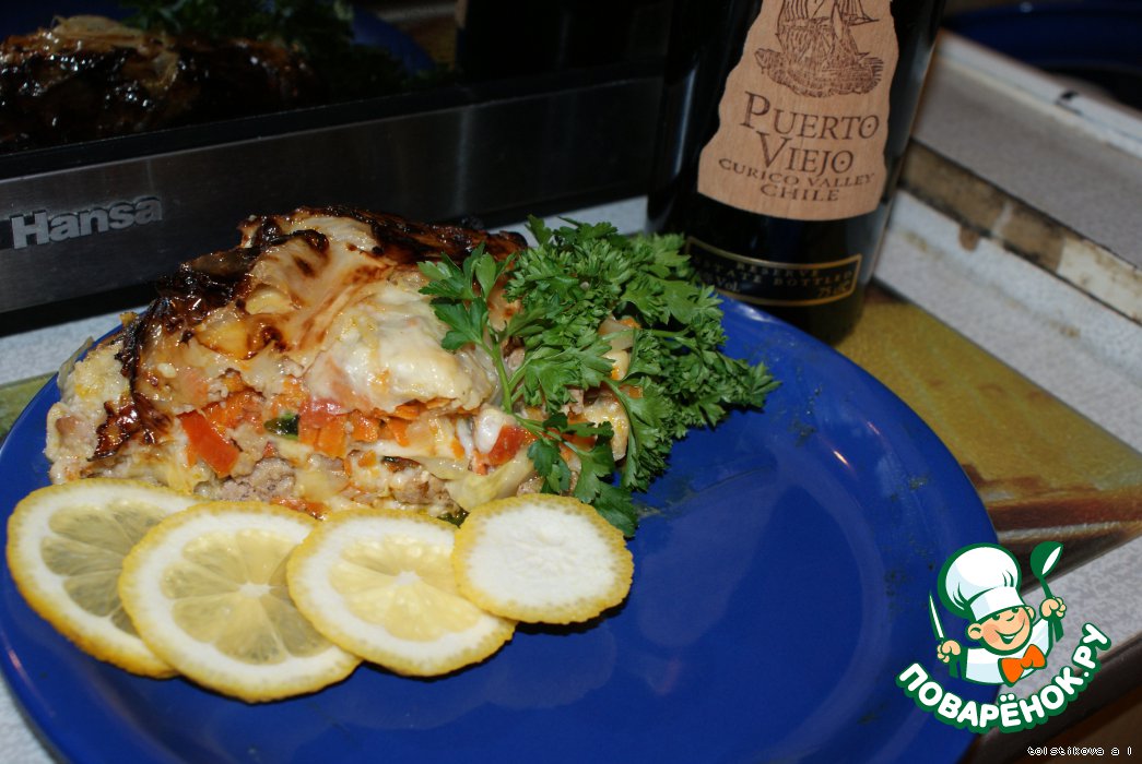 | Это блюдо похоже на лазанью, только вместо листов для лазаньи капуста! |