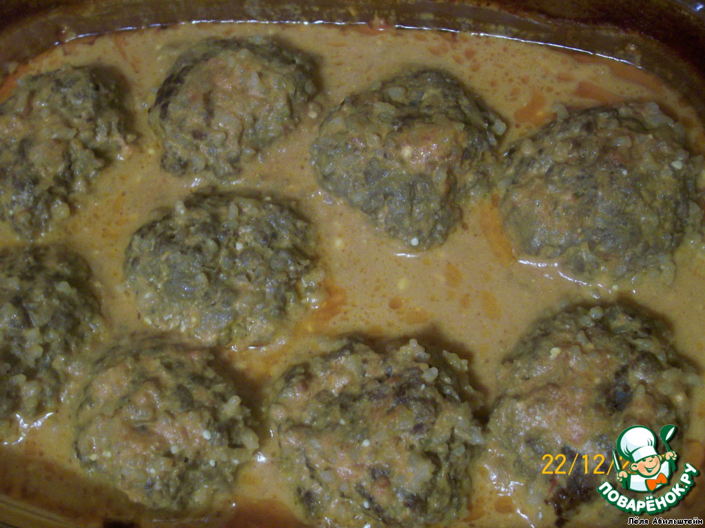 Заливаем тефтели соусом, закрываем крышкой и запекаем в духовке около часа при 200 градусах.