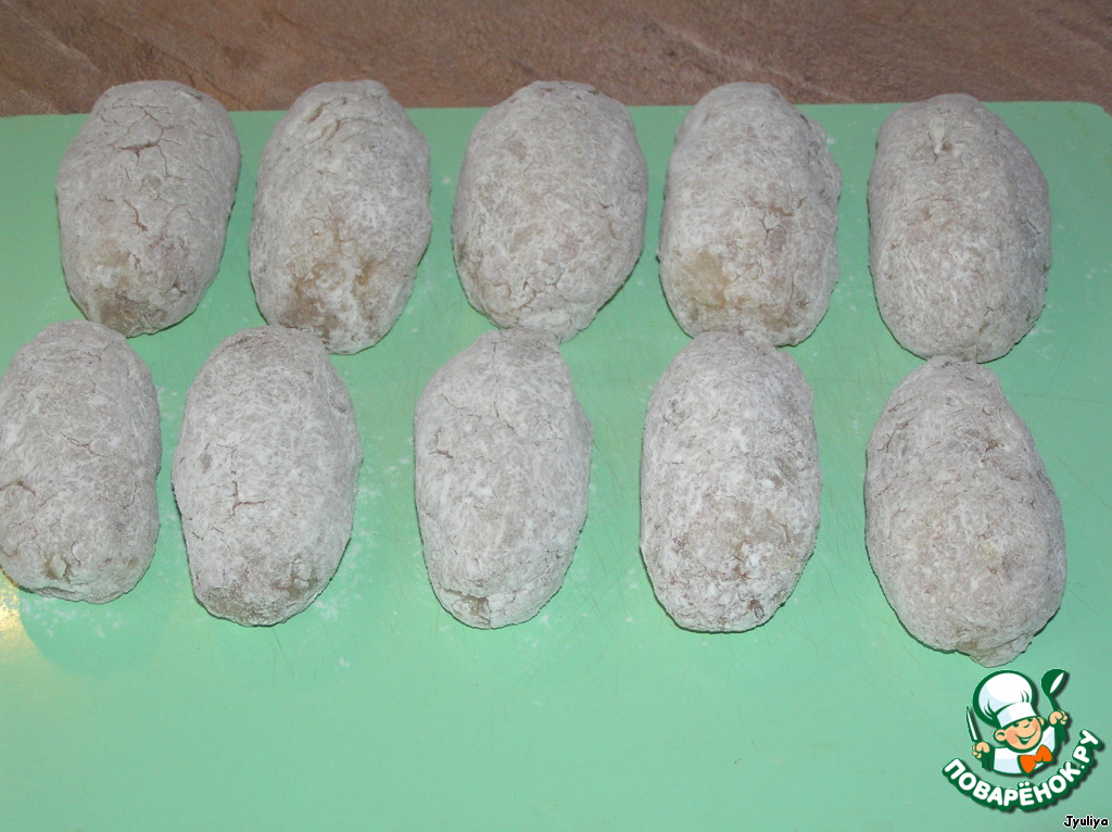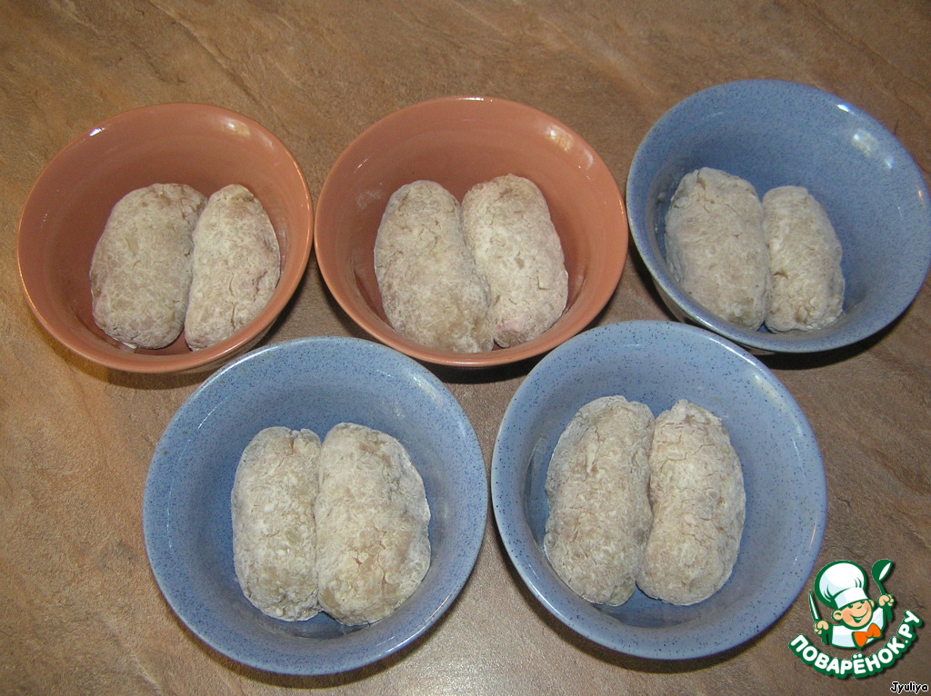 Сделать котлетку, запанировать в муке.