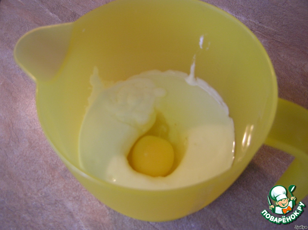 В йогурт добавить яйцо, тщательно взбить до однородной массы.