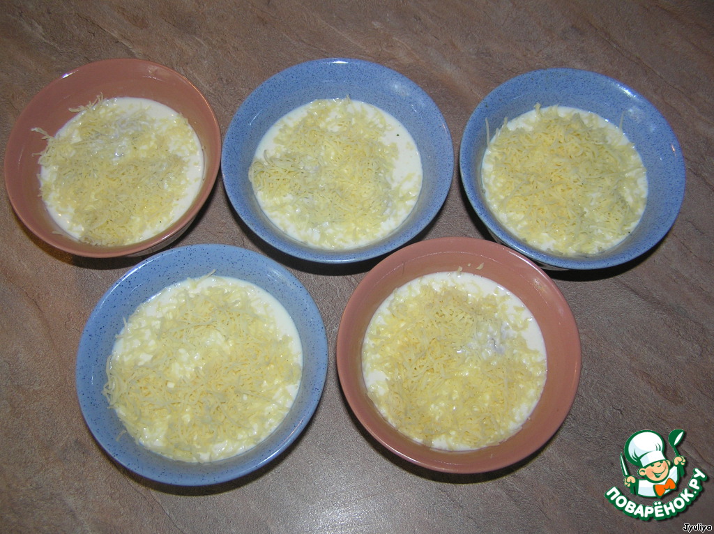 В каждую форму положить 2 котлетки.