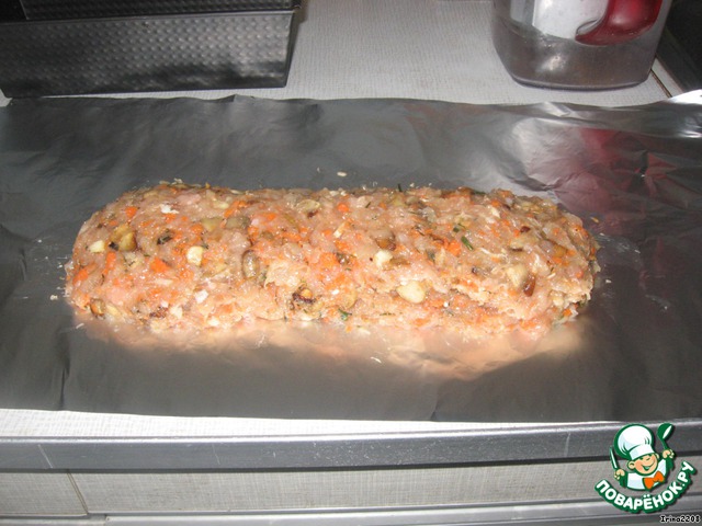 Выложить фарш на 2 слоя фольги, сформировав колбаску