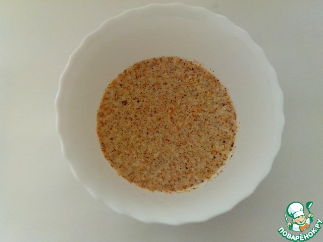 В миску насыпать панировочные сухари и залить молоком. Дать постоять 10-15 минут, пока они не впитают молоко.