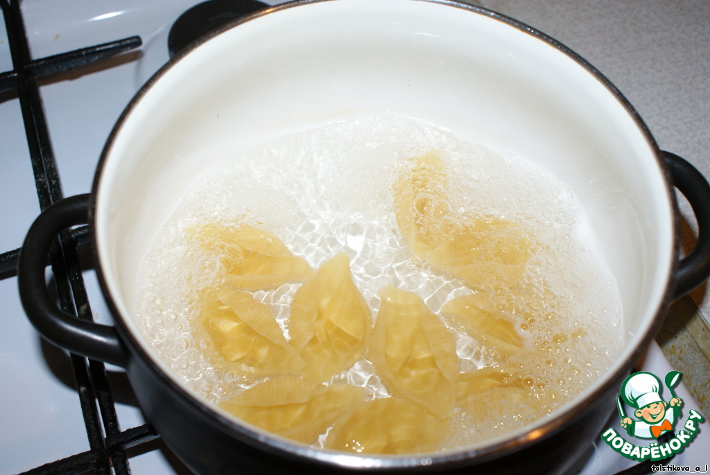 Мясная запеканка с ракушками