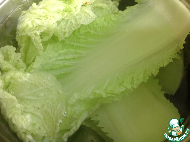 Листы капусты опускаем в подсоленную кипящую воду на 30-40 сек.