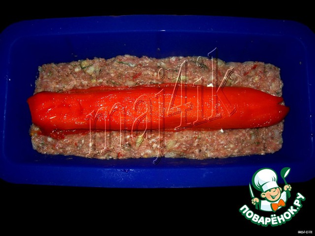 Посерединке вдоль придавить фарш, делая тем самым что-то вроде канавки.