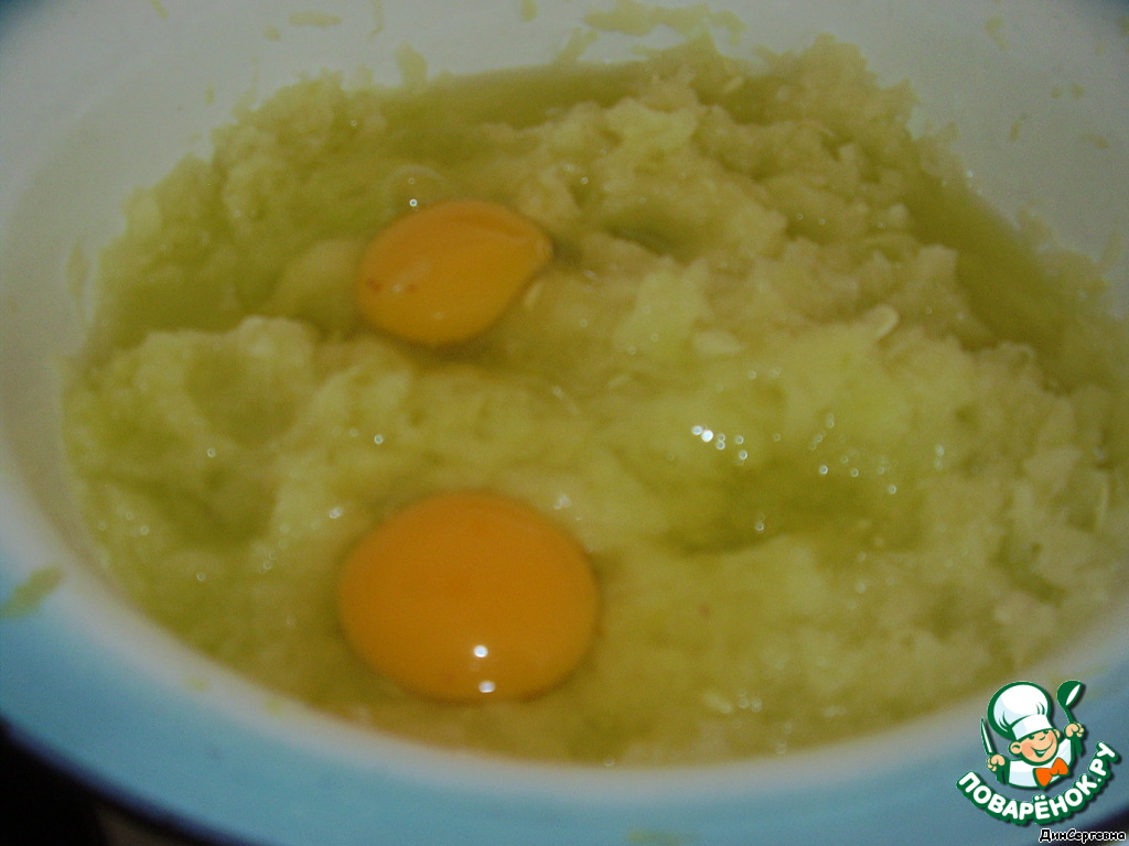 Кабачок трем на крупной терке, солим, добавляем муку и яйца, замешиваем кабачковое тесто. Количество муки зависит от сочности кабачка, тесто должно быть как сметана средней густоты.