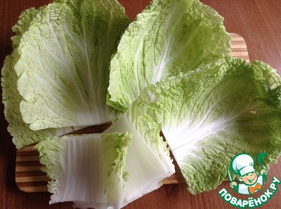 У листьев пекинской капусты обрезаем нижнюю толстую часть (она пойдет для салатов)