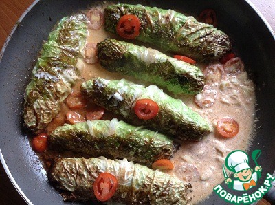 | Я люблю голубцы, но не люблю возиться с капустными листьями. Поэтому делаю их с пекинской капустой - готовятся моментально. И летом стараюсь разнообразить начинку - каждый раз получается что-то новенькое. И в этот раз начинка очень вкусная и сочная. Всех любителей голубцов приглашаю в гости! |