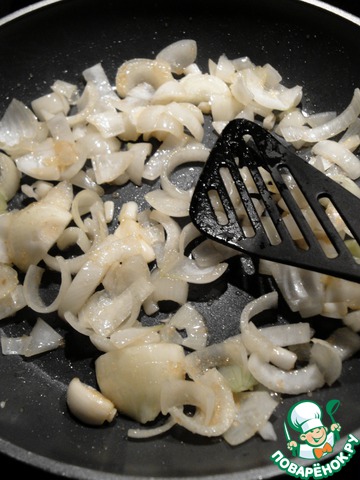 Чеснок и лук крупно порезать, слегка обжарить с раст. маслом. Подлить 50 мл воды и немного притушить. Оставить остывать.