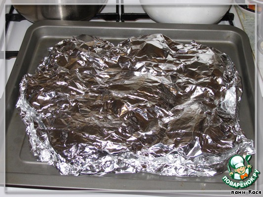 Делаем такие вот "ванночки" из фольги, стараясь, чтобы они не протекали снизу (я вырезала квадраты, поднимала бортики и закрепляла края).