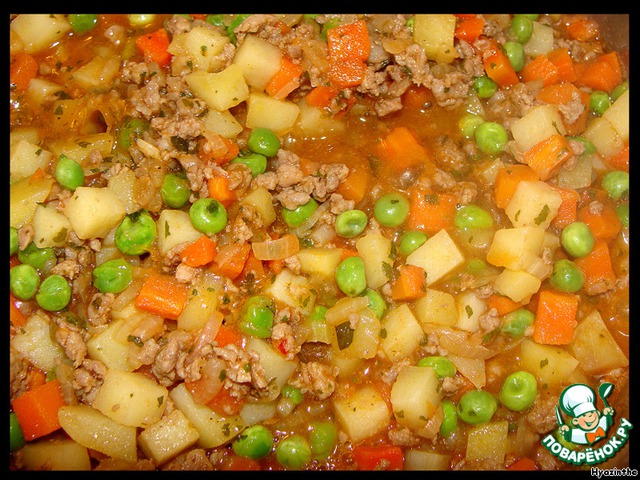 Самое занудное - нарезать мелко картофель и морковку (кубиками по полсантиметра величиной :( )