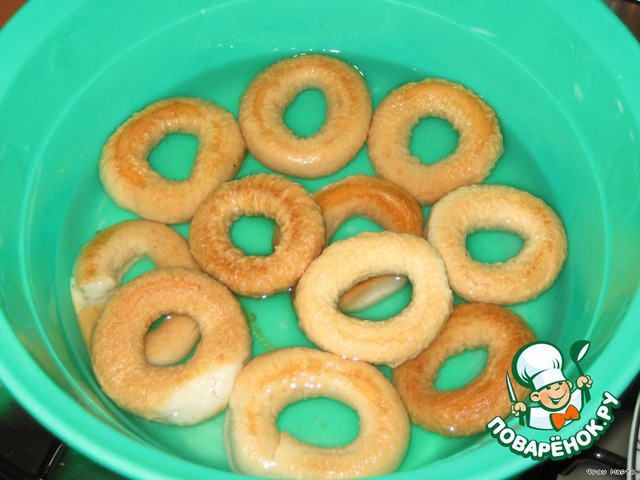 Берем сушки и размачиваем их в теплой воде (но не в горячей!), просто чтоб они немного разбухли, но не развалились!