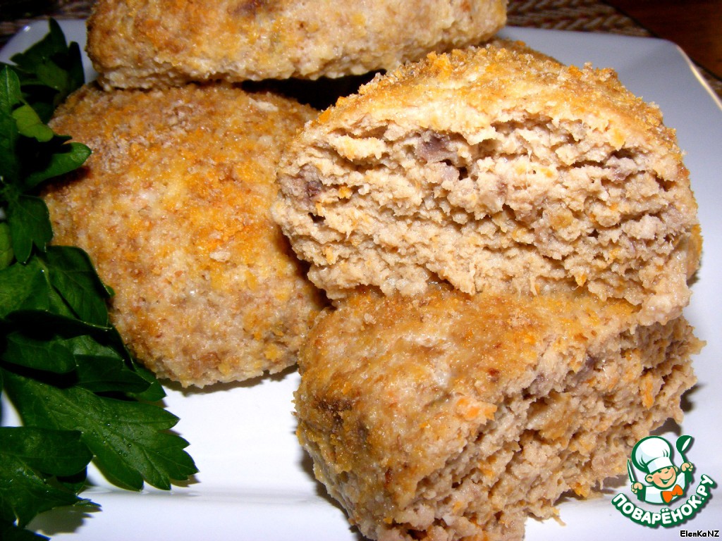 По рецепту котлетки готовились в пароварке. У меня нет этого чуда техники. Сформировала котлетки, запанировала в сухарях и запекла в духовке при температуре 150* минут 30.