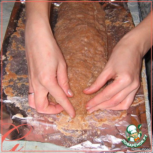 Аккуратно, за фольгу, приподнимаем 1 край и заворачиваем внутрь.