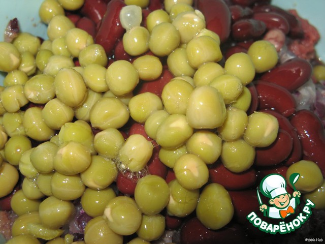 С фасоли и горошка слить жидкость.