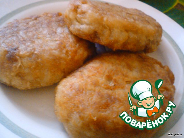 Нысыпать муки в тарелку, на неё выложить ложкой будущую котлету и обвалять в муке. Далее формируем её в руках и кладем на горячую сковородку с раскаленным растительным маслом.