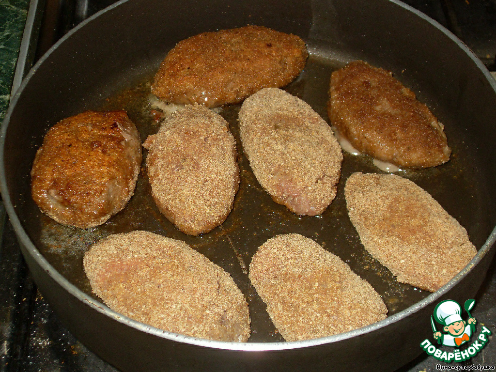 Обжарить зразы с обеих сторон на растительном масле до румяной корочки.